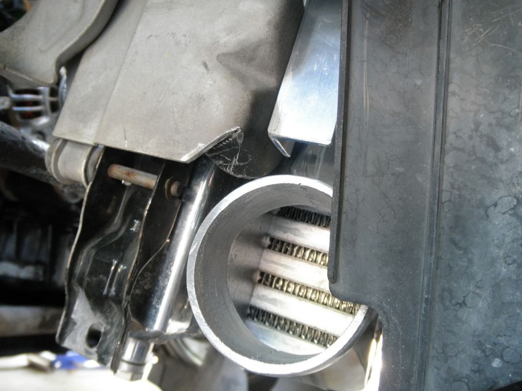 It appears the bottom row of fins is effectively blocked, oh well. I suppose i could move it up. The bottom of the intercooler is maybe a 1/16" above the bottom of the rad. The bosses just land on the raised lip of the under tray.