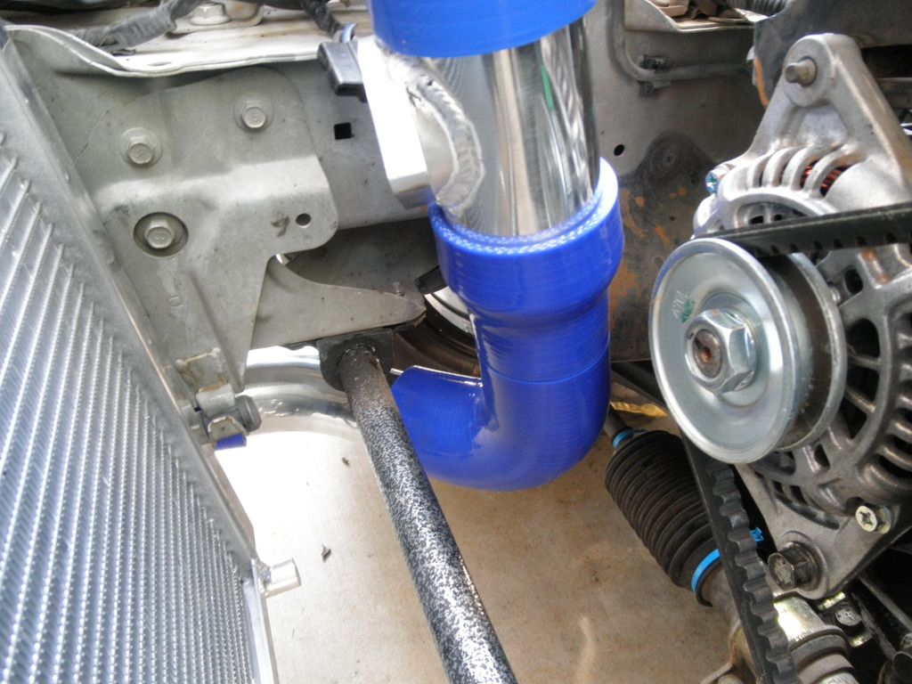 The passenger side piping is perfect. I have one of the rubber lined hose clamp things to install using the intake brace bolt to keep the rad hose in pace.