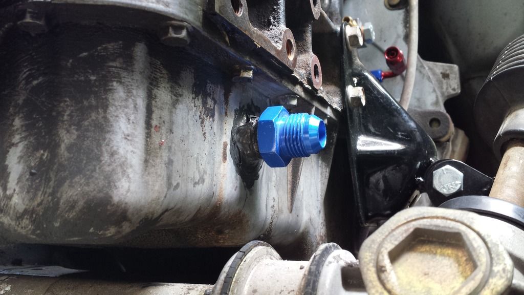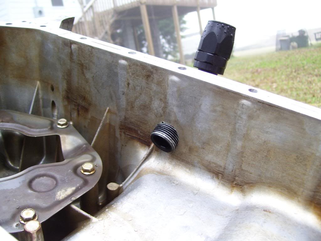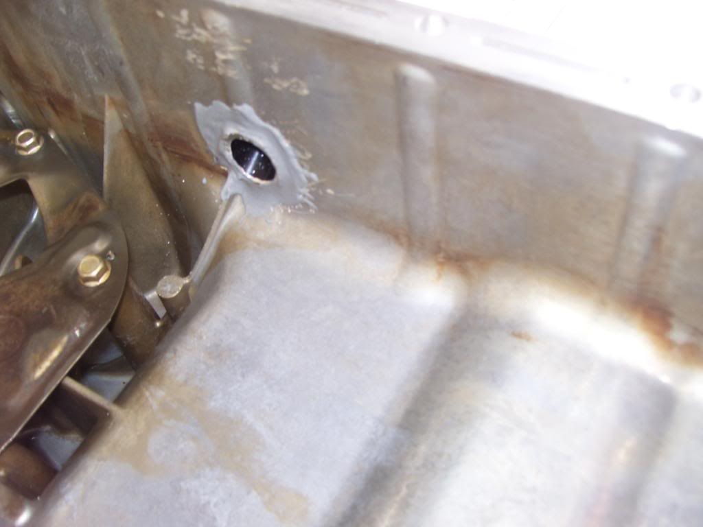 <br />1. Pull the pan and weld a bung on there. The right way to do it.