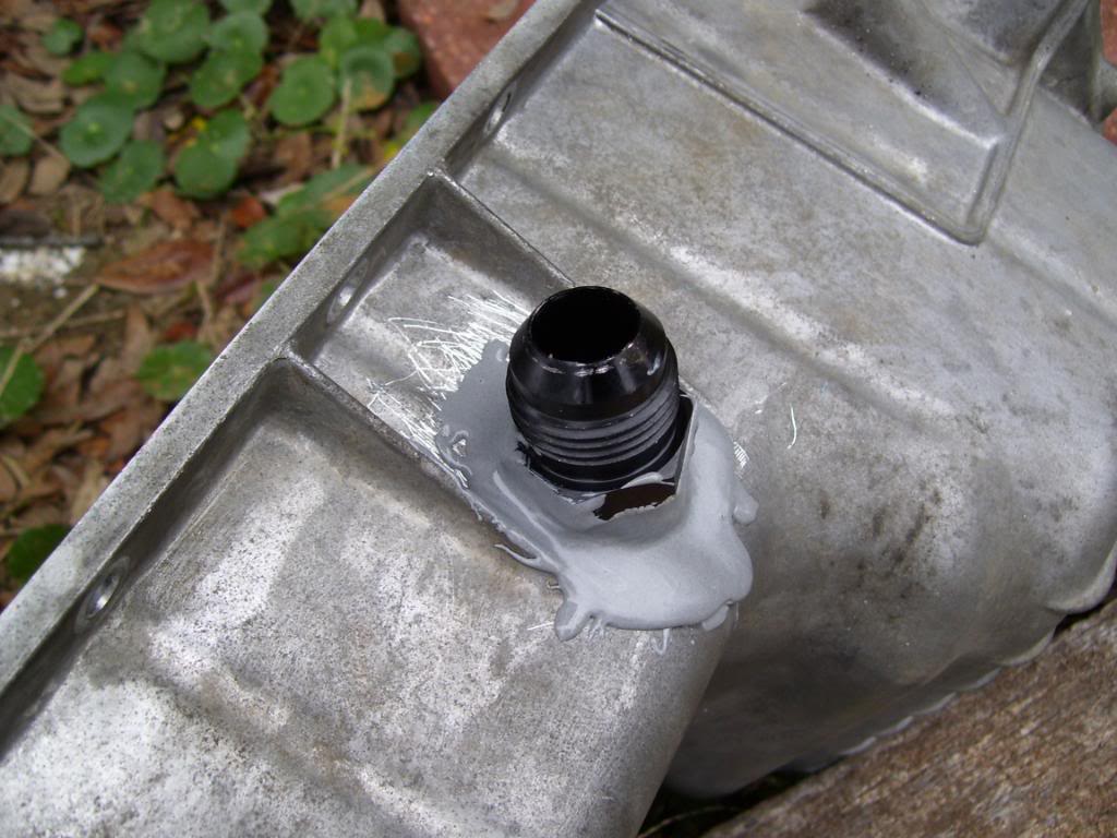 IMO there's nowhere near enough meat to ever get NPT to seal on the pan alone, but JB weld does nice. If the fitting is loose fitting in the tapped hole I'd hook up the oil line so it's pulling the installed tension against the JB as it's drying.