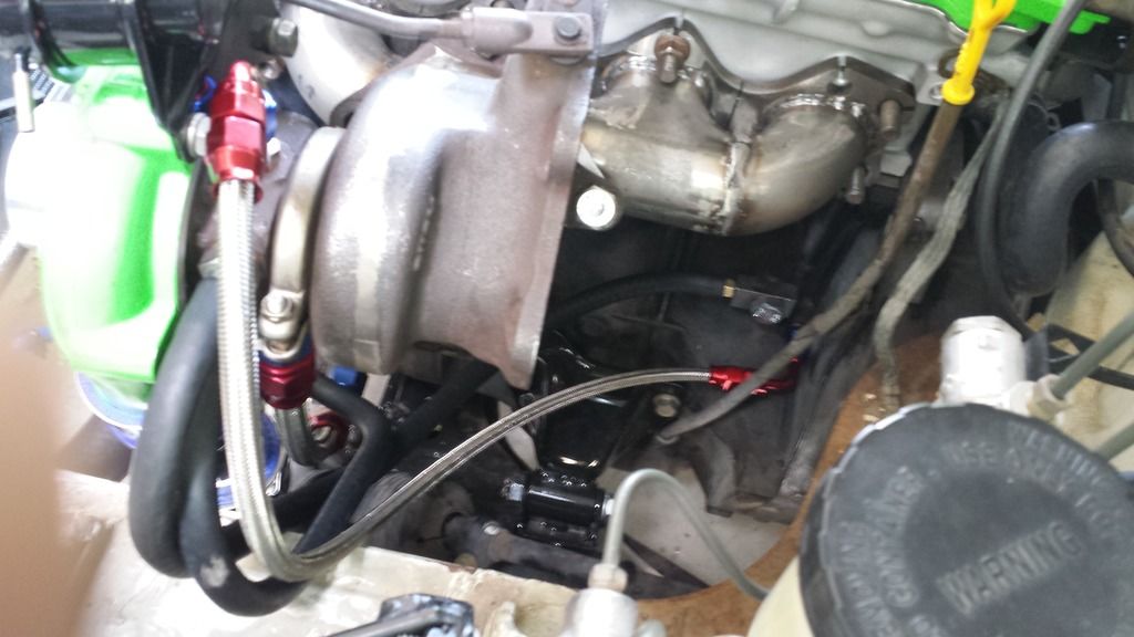 Oil supply and drain done and installed, water plumbed to turbo, started making the downpipe.