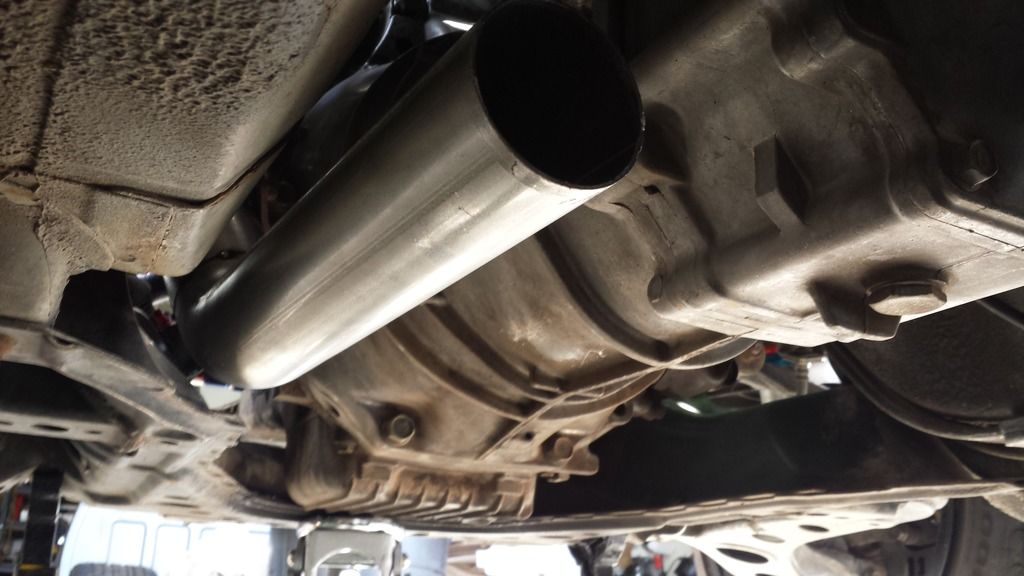 And where it ends up. Somewhere along that final straight ill merge the dowpipe and transistion to 3". The wastegate pipe should have plenty of room along the top of the main pipe. Ill probably cut the "annoying tranny ear" off to make more room for install, which may actually require that I use a slip joint and make it into 2 pieces.