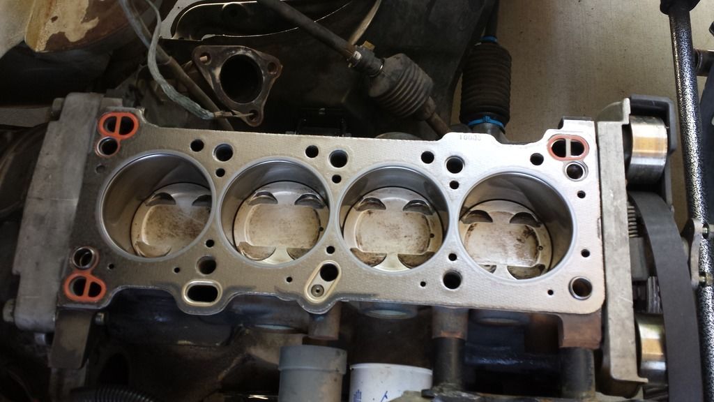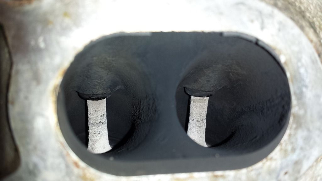 cylinder 1 and 3 are just carbon covered, cylinder #2 is wet, and #4 is drenched. There is now no doubt that whatever the issue is, its coming from the combustion chamber or head, whether it be rings or stem seals or HG.