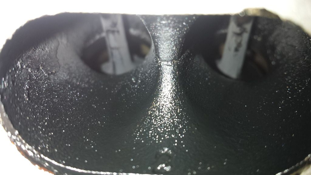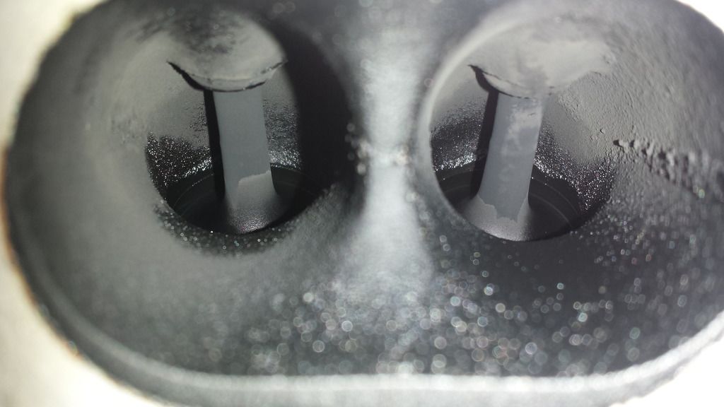 Its really hard to get a pic of the piston but I tried my best. You can already see specs of oil deposits forming and the general wetness.
