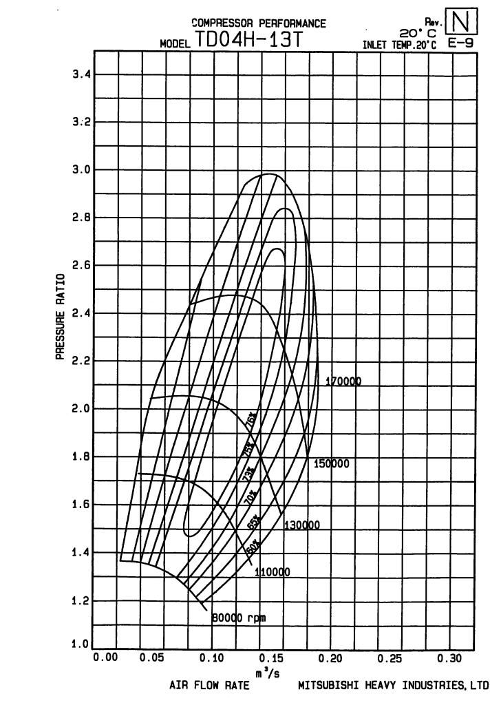 But yea, I think these little suby TD04s start blowing hot air around 16-18psi. I plotted the compressor map at 10 and 12psi, and one of those lines ran pretty close the middle of the highest efficiency island.