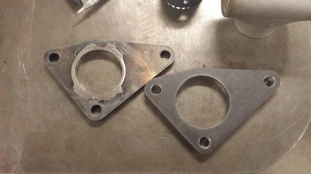 i machined a piece of 3/4" plate flat and drilled and tapped it for the flange bolt pattern. i bolted the flange to it for the runner welding for obvious reasons.