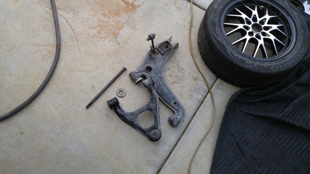 As some of you know, im possibly going to start making delrin suspension bushings, and my car needs new bushings everywhere. I never wrote the dimensions down for the front, and Ive never had the rear apart, so the car came apart today to get measurements and start swapping mine out.