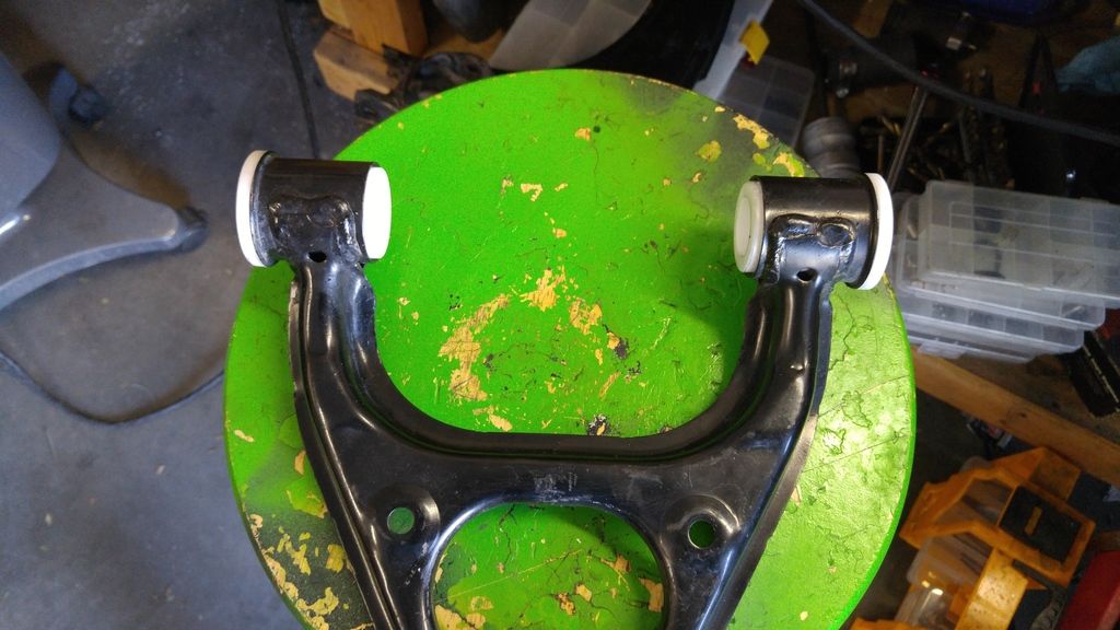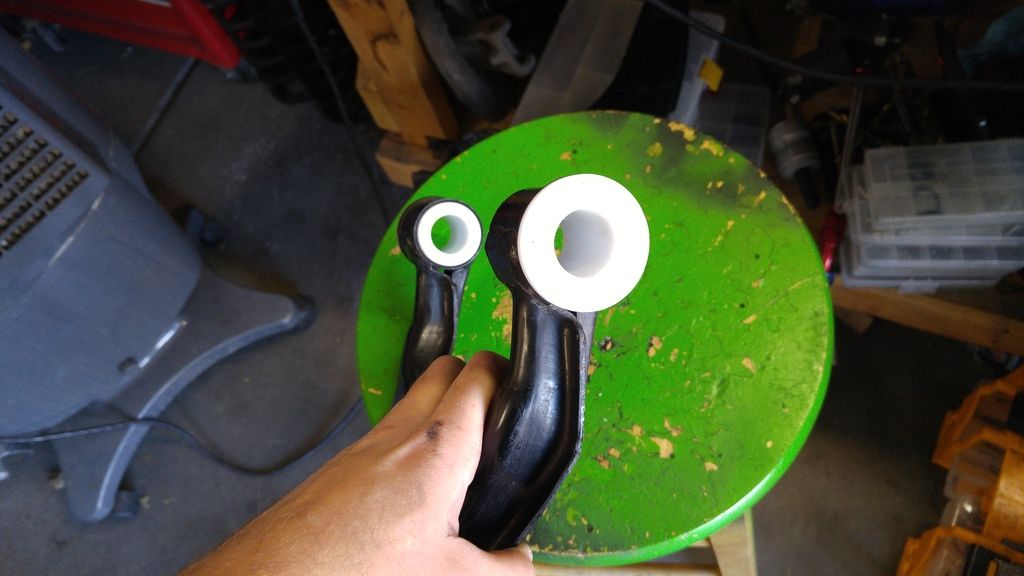 Its weird, one bushing didnt crush much at all and the sleeve pushed in with a good bit of hand force, the other had to be reamed out a lot. Same OD, same 1" drill bit for the bore, but be differences in control arm bores. One side did feel like it pressed in a little harder.