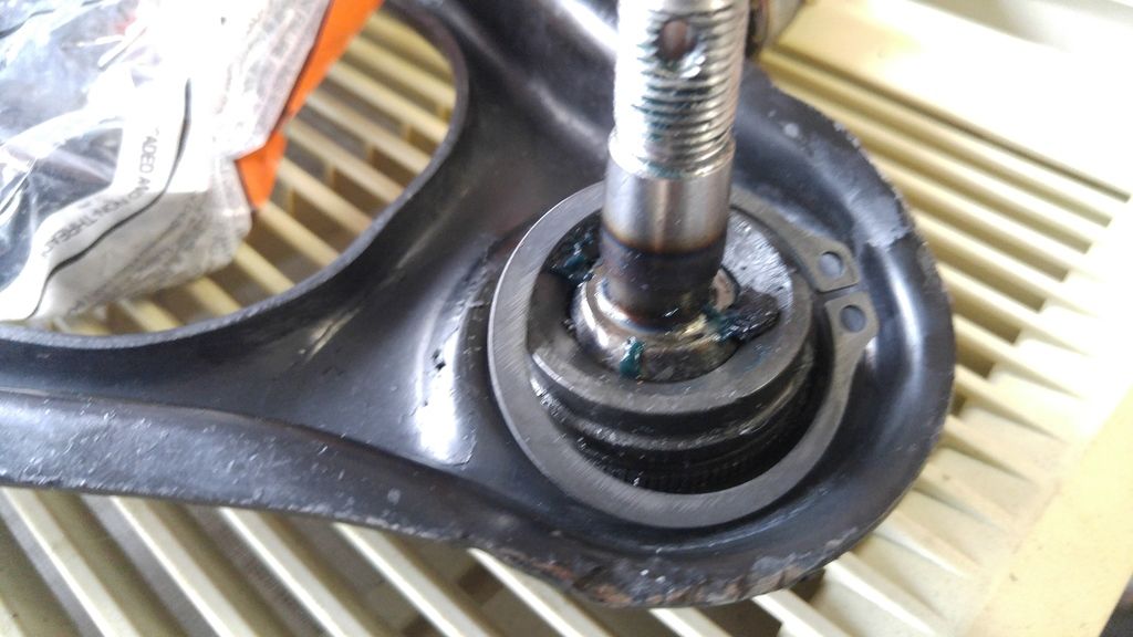 tip- use a pipe when pressing the new ones in. I just used a scrap of plate to level the arm out, and it just bent the outer lip of the arm, and went in crooked any way.