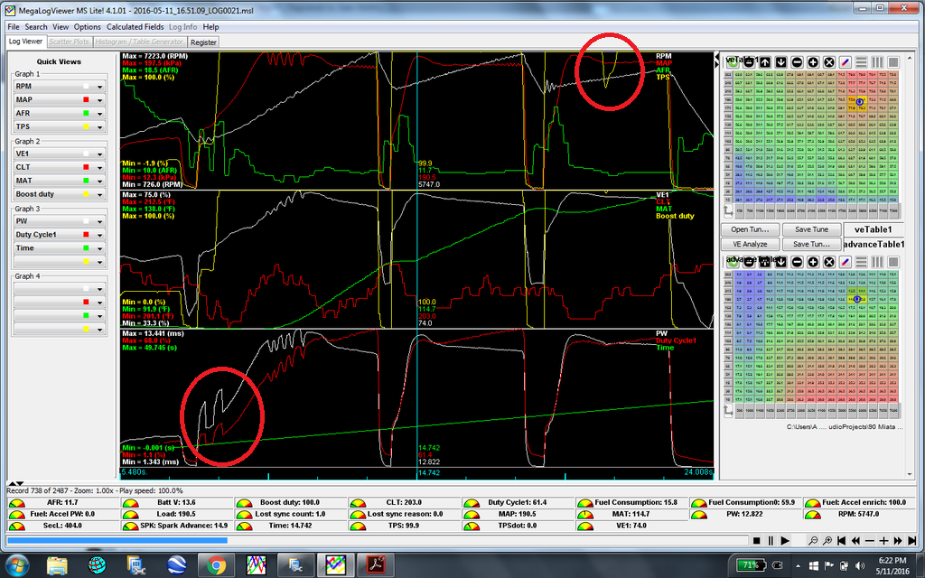 I think the TPS might have been me. not sure, but ive never had any TPS signal issues before. And i would guess the 2 spike on the lower left are AE spikes. Ill see if i can get some cleaner logs.