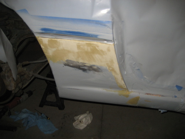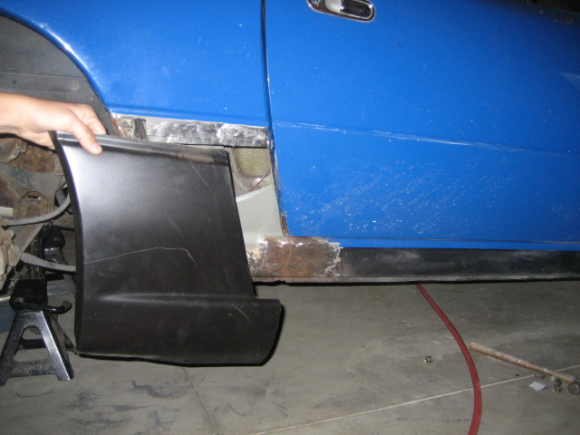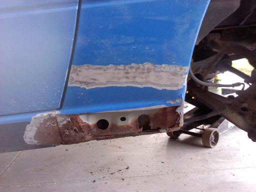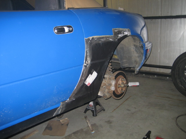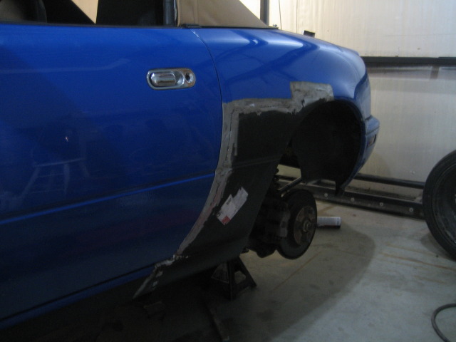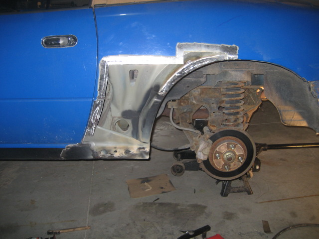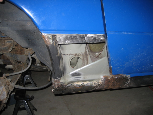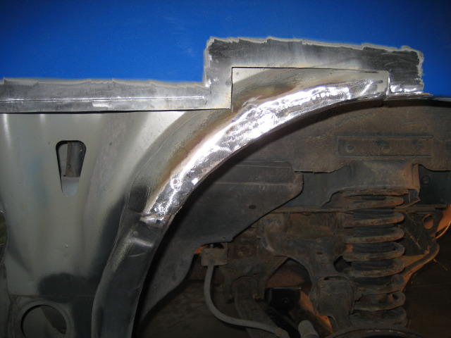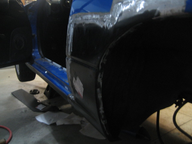 Body all metal was welded in, primed and bondo'd. It is still sitting this way. Ill get the finishing pictures up as soon as i finish! (when i get the car back)