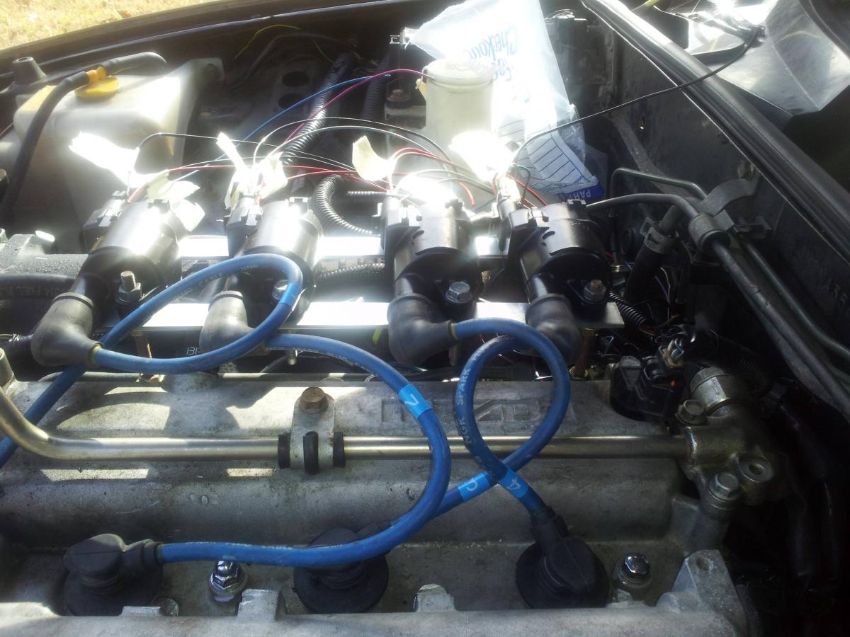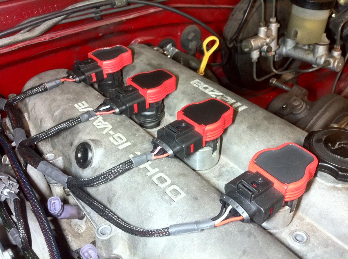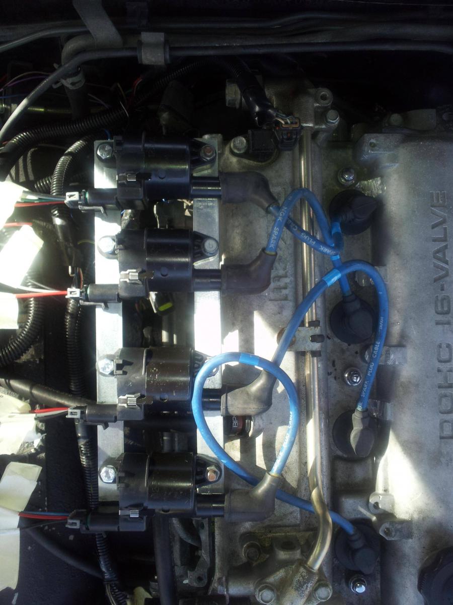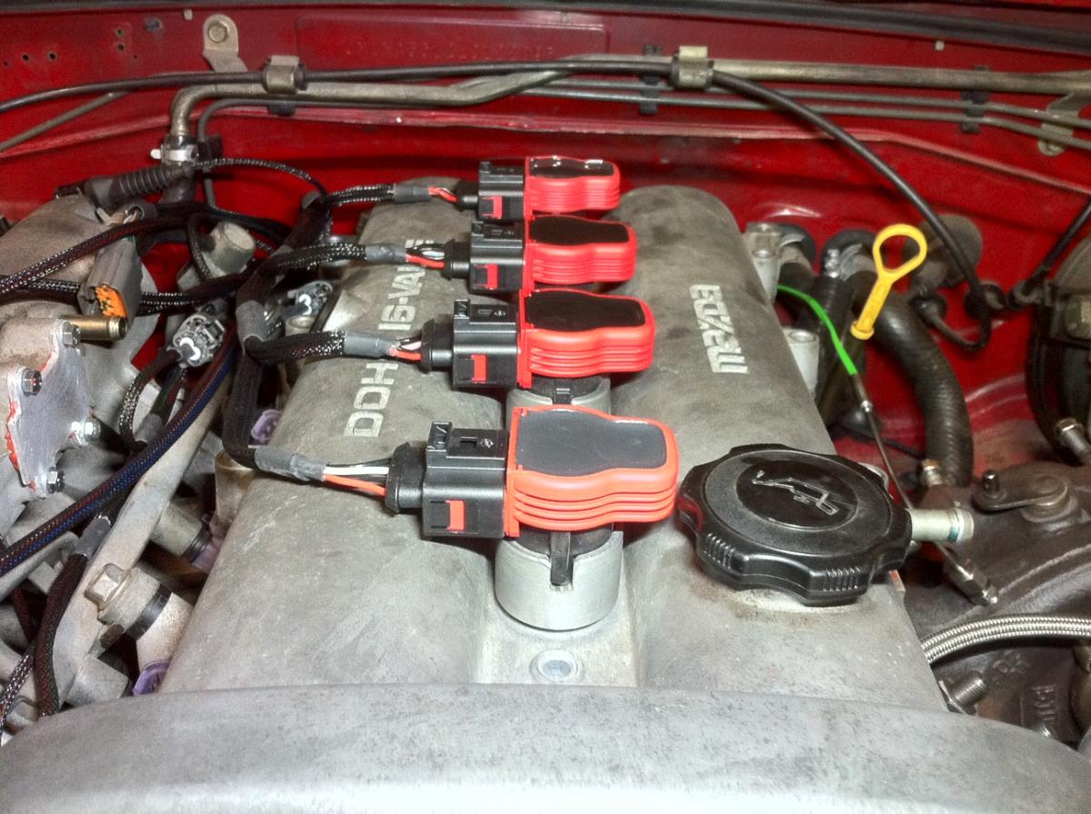 The real test will come if this mount actually holds up once the car is running. I tried mounting them where stock coils would go, but with the VVT line back there and the coolant temp sensor placement of all 4 was nearly impossible.