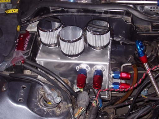 looks like you had 1 line to catch can on driver side, and pass blocked. I wouldn't have done that.