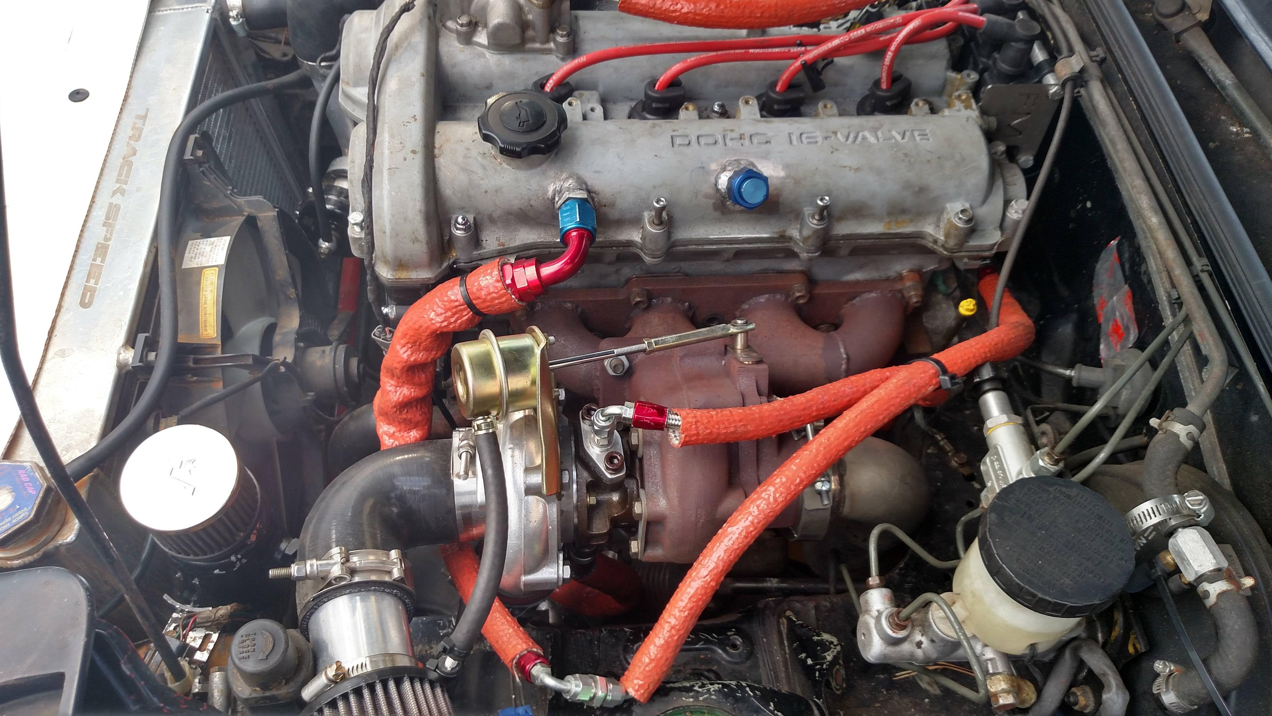 So the motor is in, starts, and has oil pressure. Unfortunately it is running real rough, idling around 42kpa, and leaking slightly out the back of the head at the coolant reroute spacer. I have been busy working on my new DIY setup so fixing these issues have not been high on the list. This weekend I should have time to get to work on fixing these issues. First will be the water leaks, after that I will hopefully figure out why I am idling at such a high kpa and get fixed. From there will be lots of driving and tuning on the car NA. Then my new t3 setup will go on for product testing. After that my absurdflow setup will go back on and I can hopefully crank up the boost.