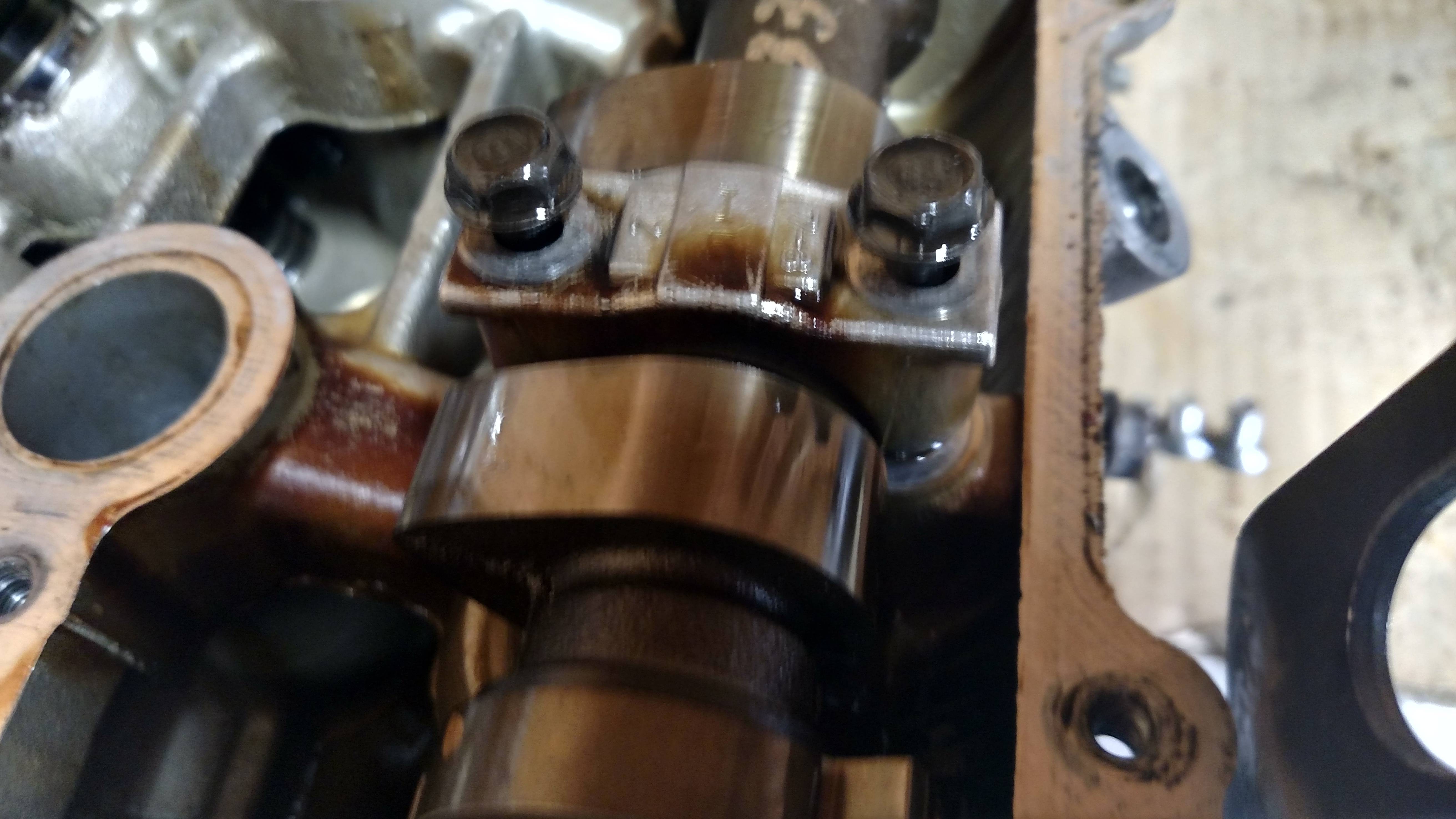 3. Tried new rebuilt motor with sandwich plate, had no oil pressure when trying to prime the pump, figured out it the sandwich plate. Removed it and oil pressure was good. Spun the thrust bearing while trying to prime originally, but motor was running good it seemed. Figured out about 750 miles later that crank could move in and out. Pulled motor and figured out what was wrong.