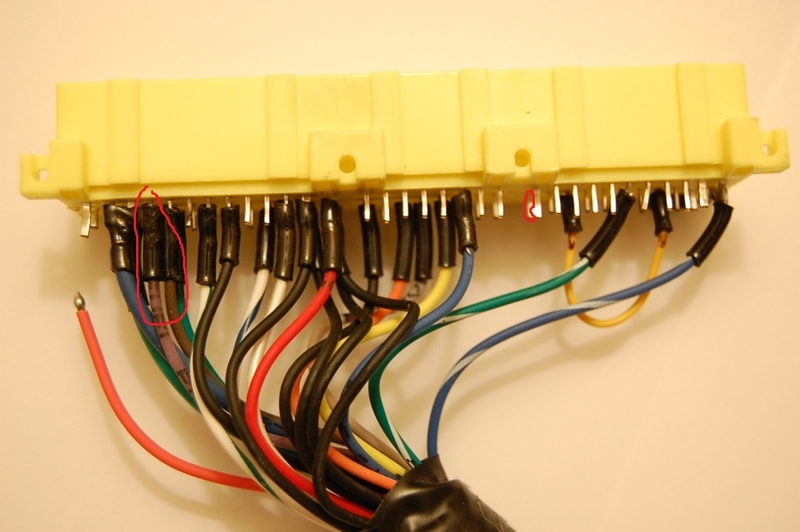 Look at the purple wire I circled and then look at the spot that I circled that is open. If that purple wire is correct and hooked to ping 37 of the DB-37 then it is in the wrong spot on your yellow connector.