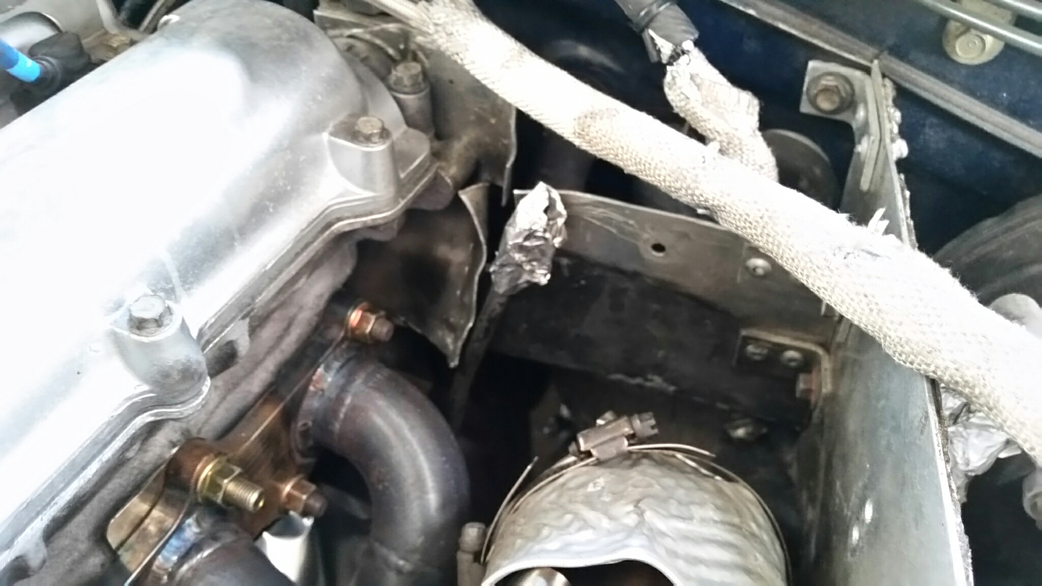 Built some heat shielding beneath and beside the new Artech manifold to keep the heat from destroying the water hoses and A/C compressor, etc.