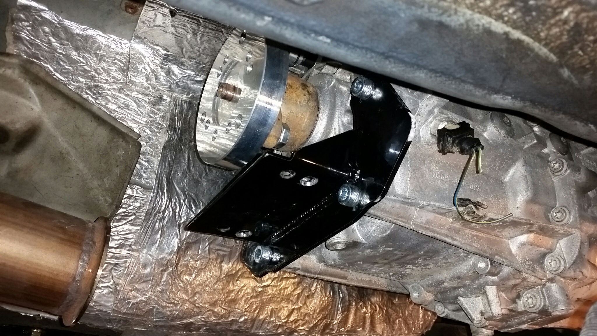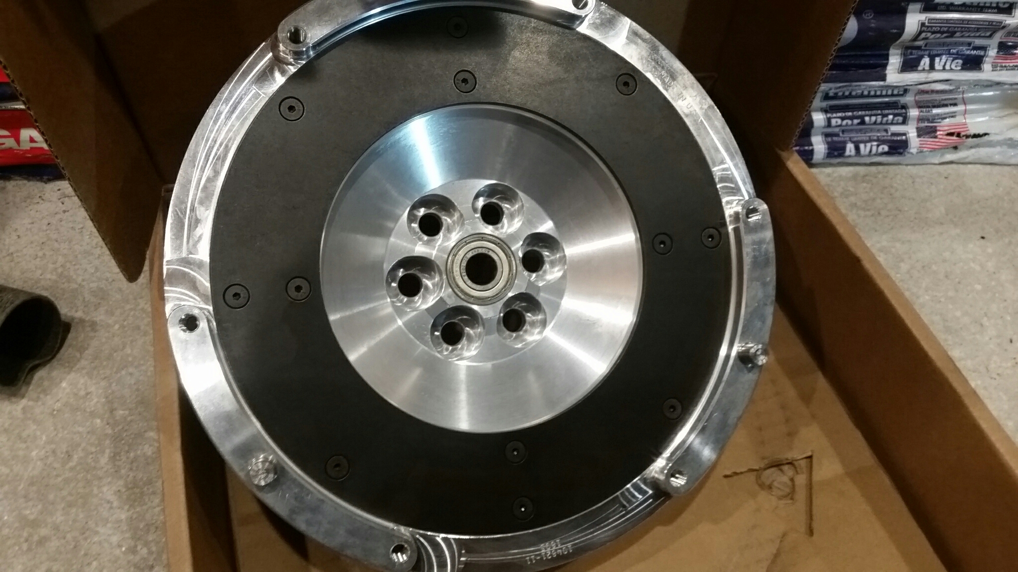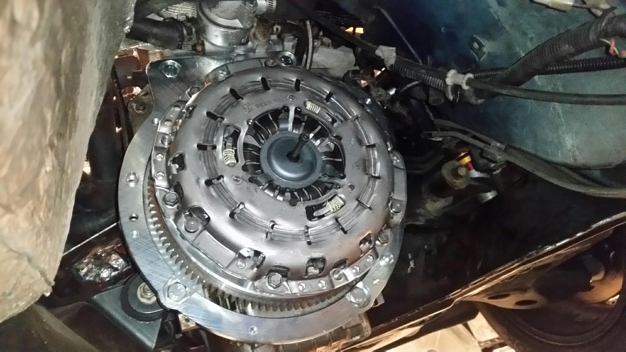 Fancy *** flywheel, V8R framerails come with kit for the BMW swap. Using stock 530i pressure plate and clutch.