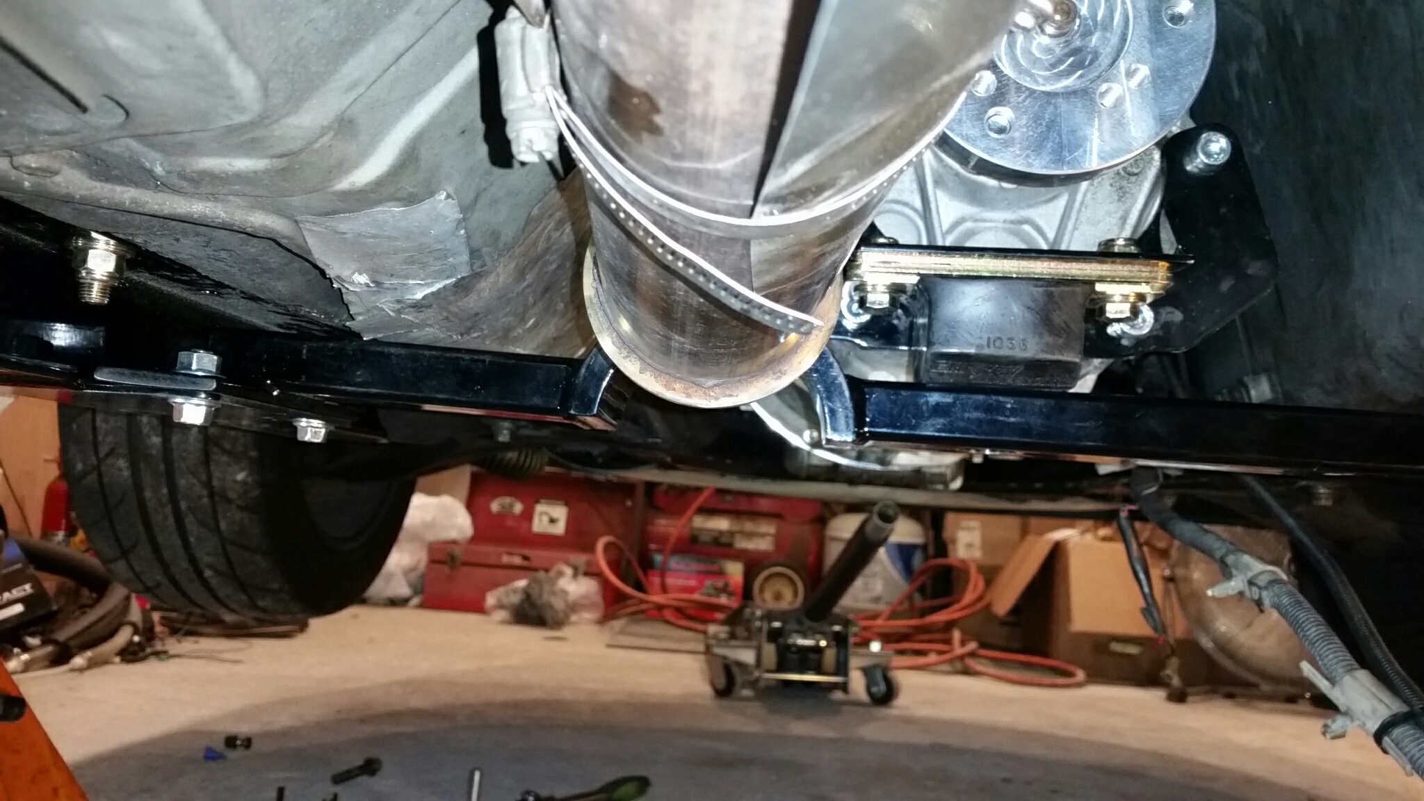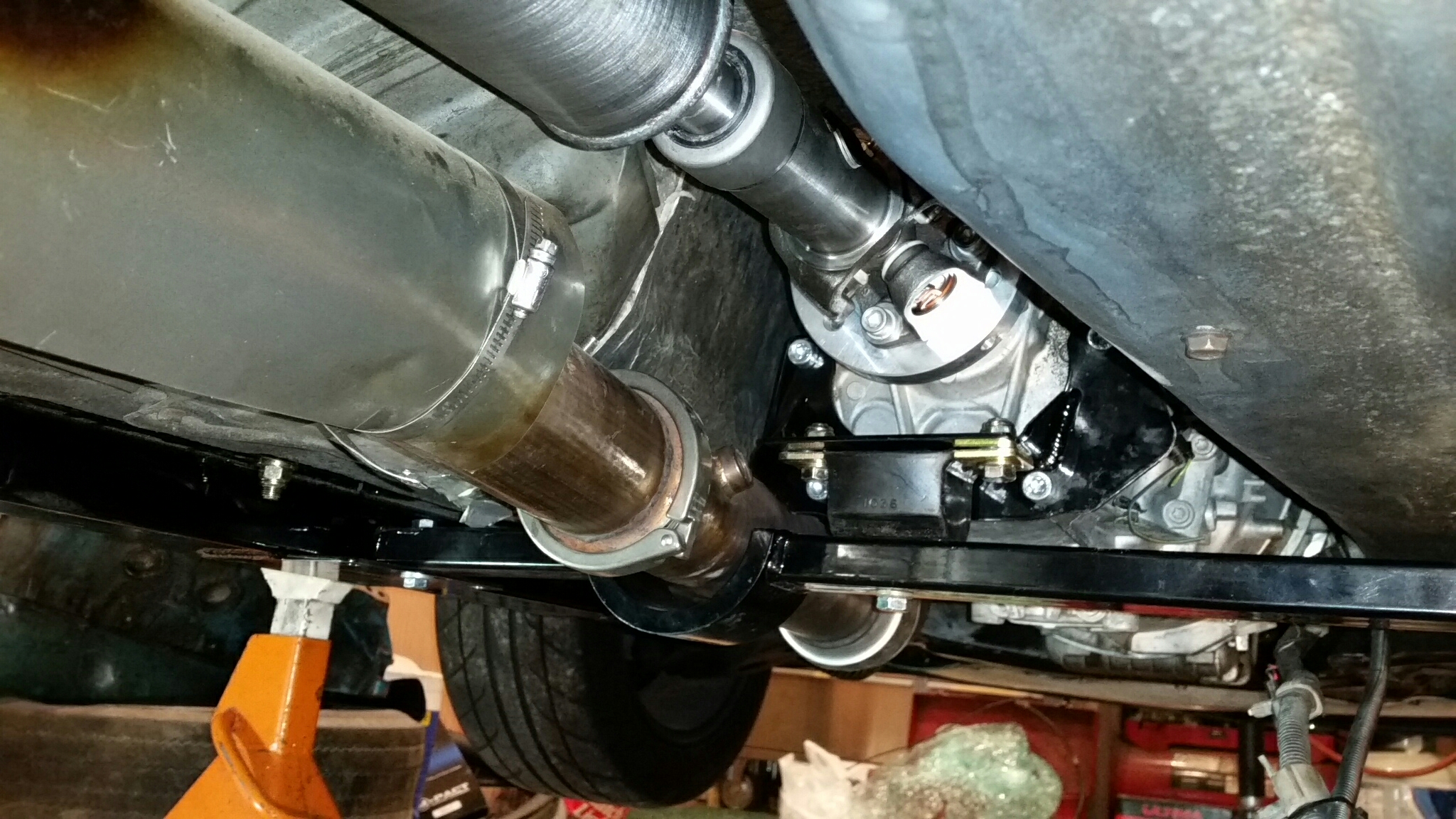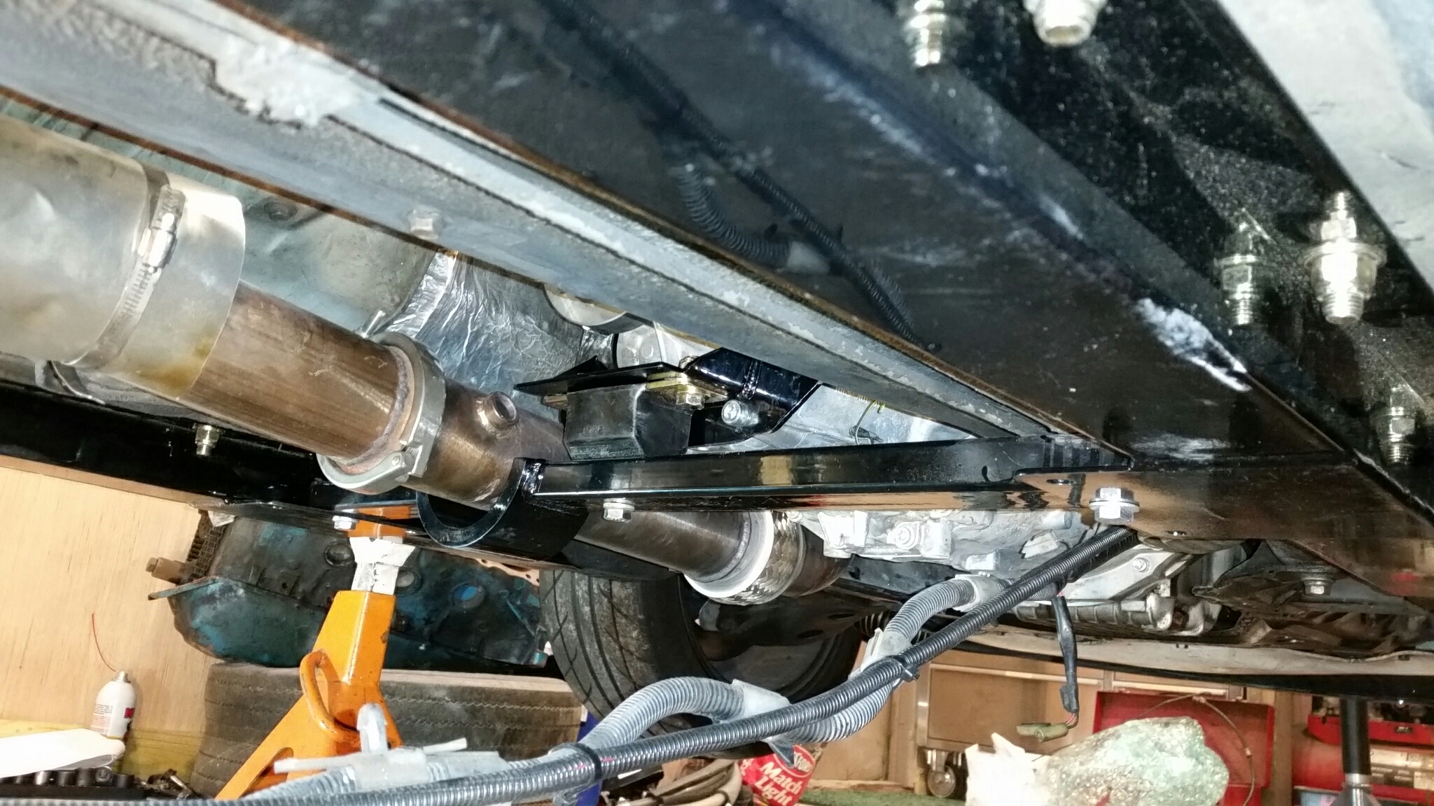 But that puts a 3in exhaust too low for me. I flipped it and removed the crossmember mounting tabs to get it thinner so a nut and bolt could be used through the crossmember itself.