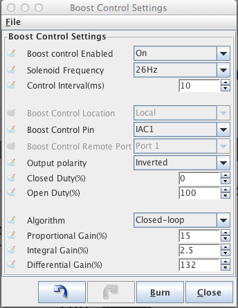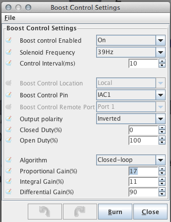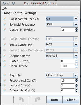 I've done some tuning with these settings, but based on my testing, PID boost control seems to suffer from the same problem as using an MBC: Depending how the onset of boost occurs, it's possible to way over/under-shoot your intended boost target.