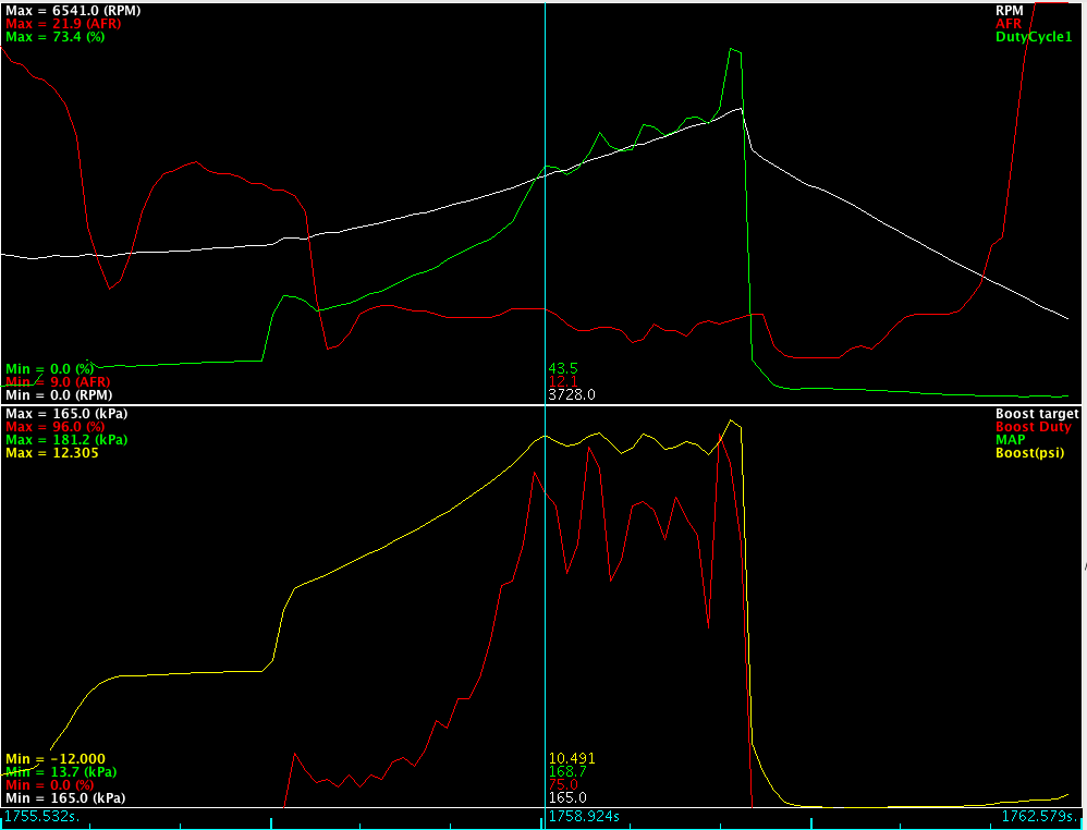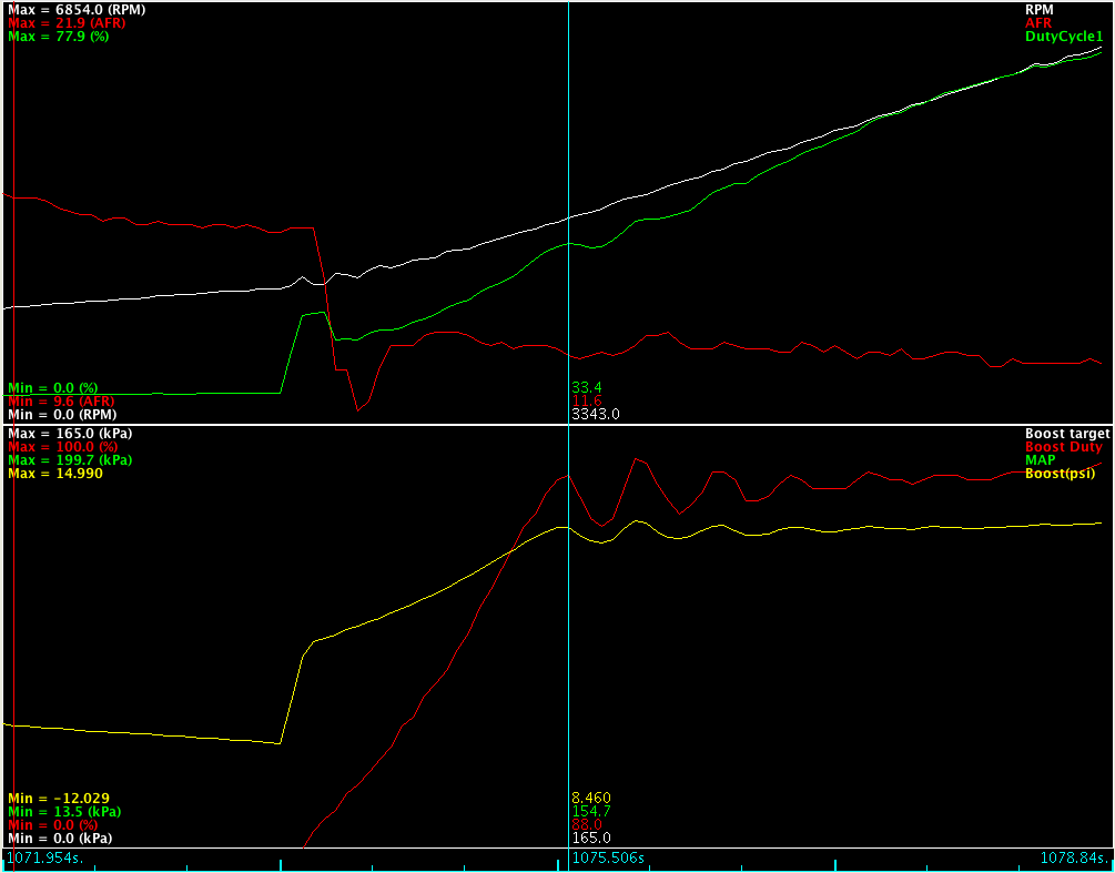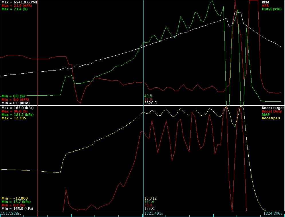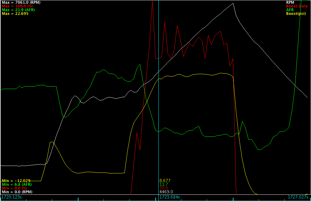 I think I need a slight bit less I term, and that should also automatically increase the effect of the P term. It's hard to tell just from the picture, but the overall boost level raises by about 1 psi over the length of this pull.