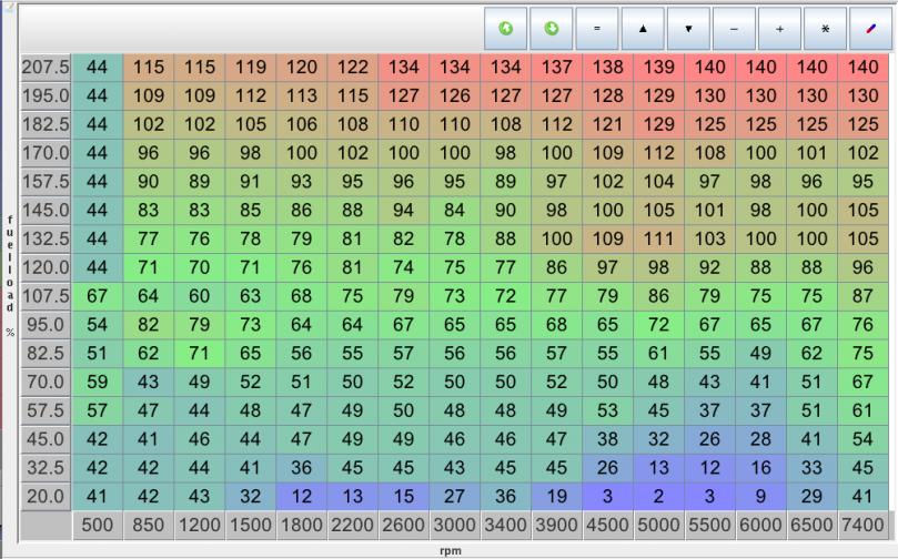 And for kicks, my VE table too (I've never reached the higher boost cells, so they still have my initial over-rich values):