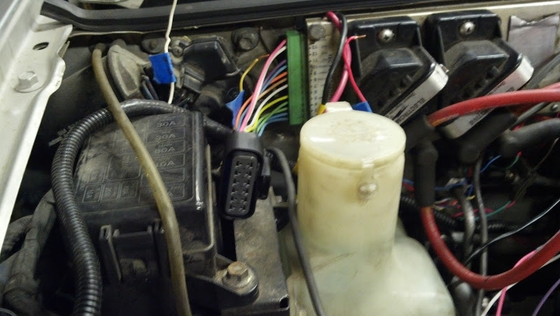 This was the 12 pin connector, I replaced these with 16 pin connector. The tec-2 has 14 pins. When I go to another ECU (MS 3.x?) I will pull the harness apart at that point and wire the side of the 16 pin shown connector to the MS3x to mate. Easy swaps since I long ago ditched the 1.6 in place. Photos in progress so visible wires have been removed, cleaned up, etc.