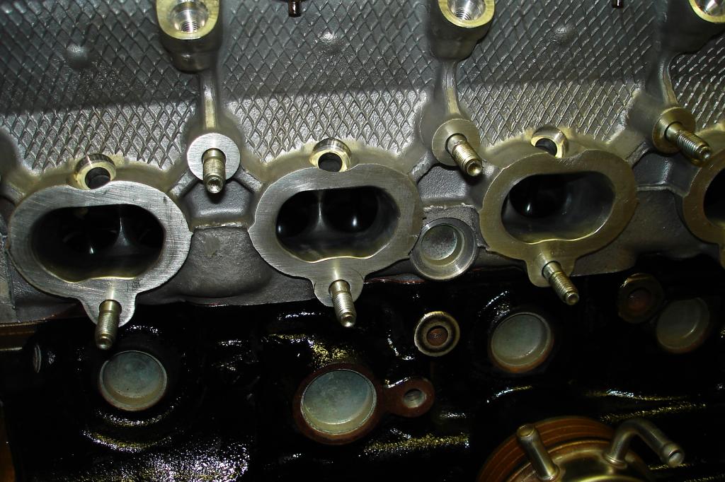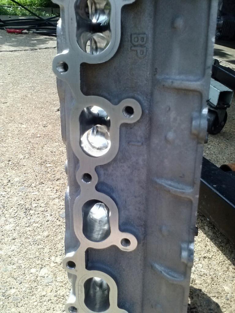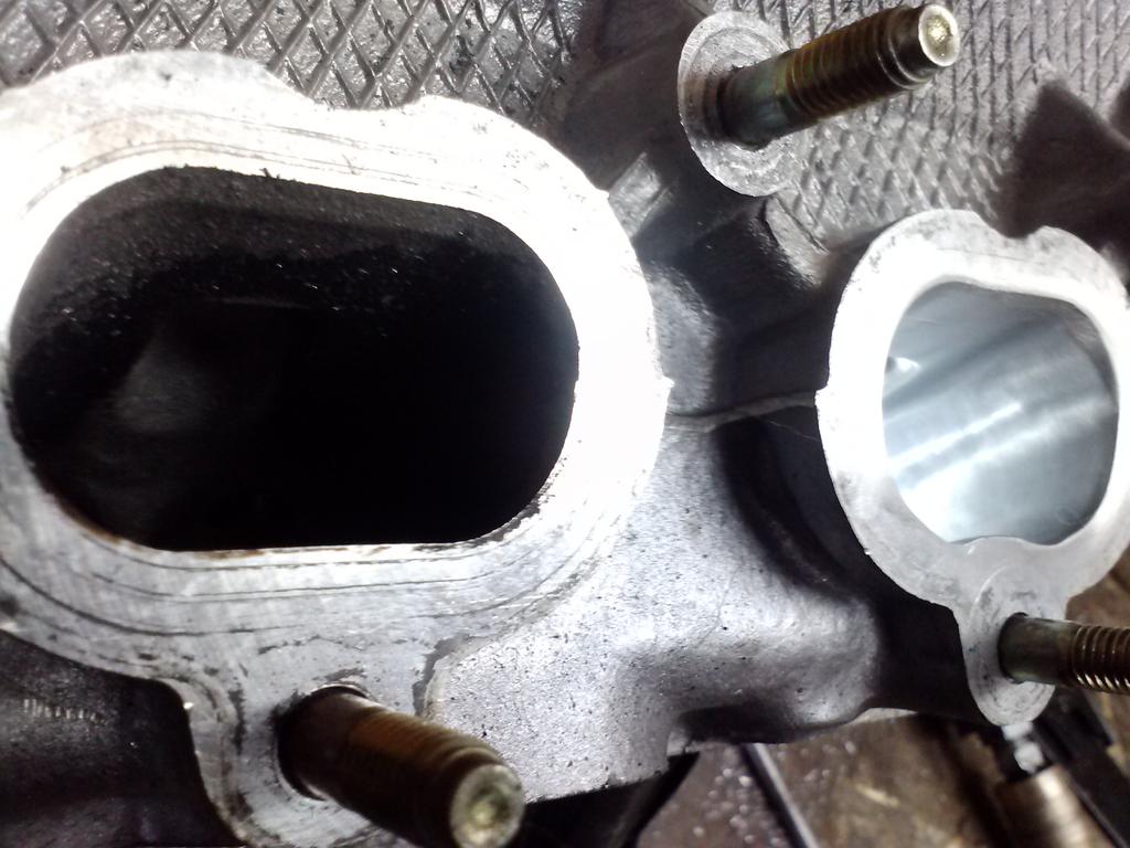 Exhaust ports cut differently than intake ports. (intakes are cut down more on the bottom slope, and exhaust more so on the top slope.)