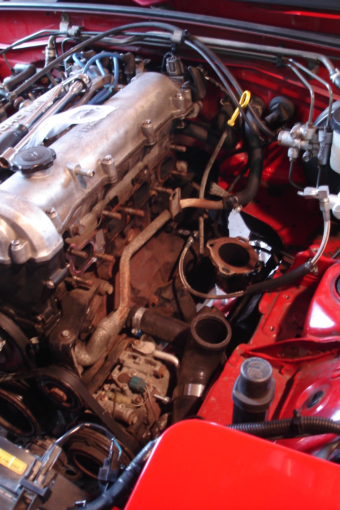 Anyway, i've gotten the turbo reassembled with stainless hardware, and put back together. Reused the lock washers, i'm sure they'll back themselves out in 500 miles. Tightened up exhaust piping. Added a little fluid to my trans. Drank a beer...