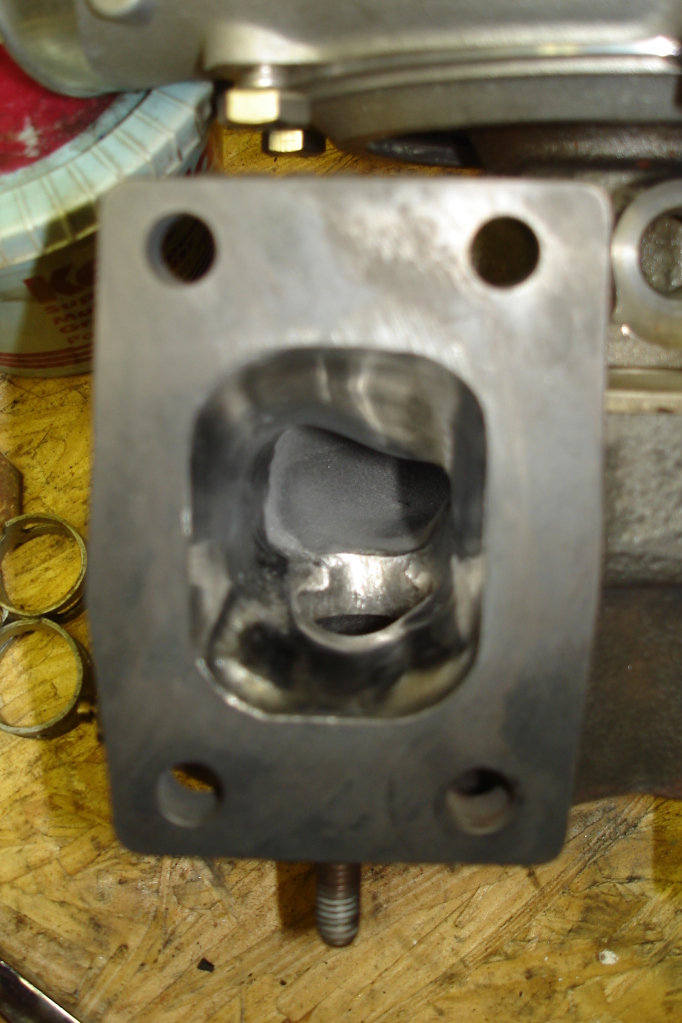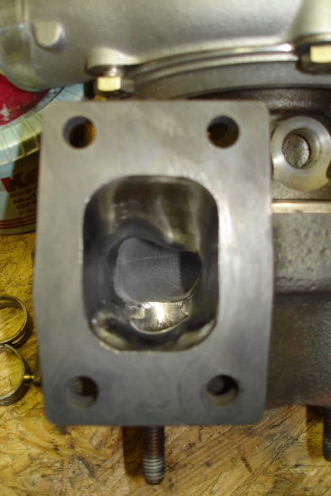 Now because no one had any idea on WTF is going on with the overboost issue, i figure i just rip the damn thing off and do a full port / polish of everything - including porting a nice channel to the wastegate. What a PITA this is to get out.