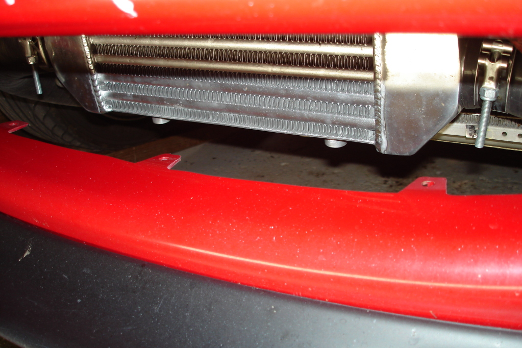 Intercooler is mounted very nicely and sturdy. Didn't get pictures of the mount, oh well. I also need tow hooks badly, or painted.