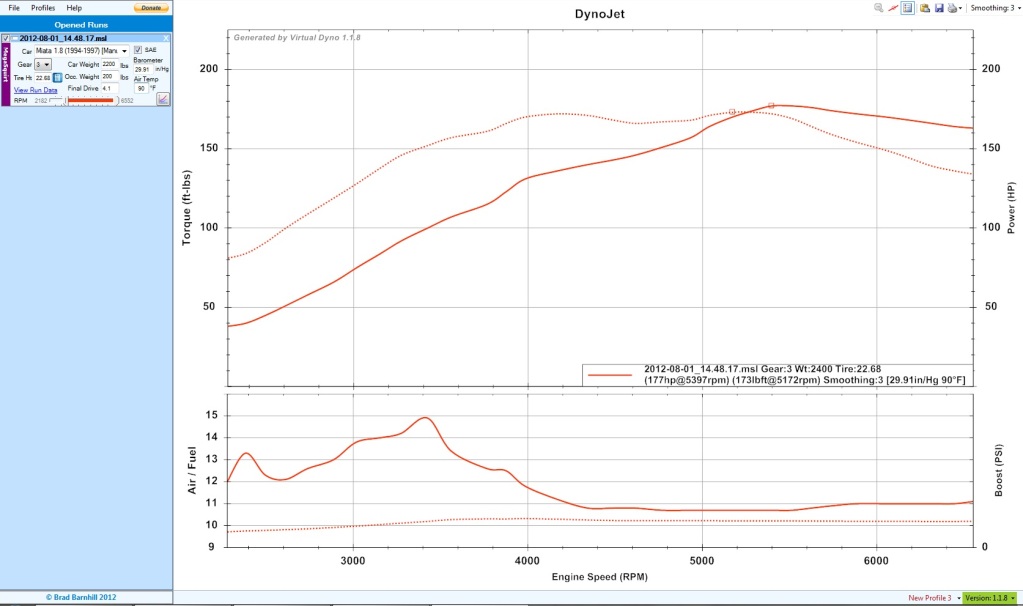 Any dyno numbers on this thing? Curious if so. Or at least throw a good 3rd gear pull into virtual dyno and see what you are at there. That would be neat. 13's isn't bad at all.