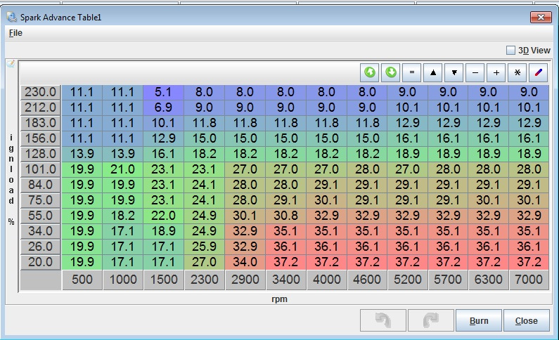 You could essentially shift that entire map up one cell. At 12 psi youre at 12.9 degrees atdc, you could easily be at 16 degrees.
