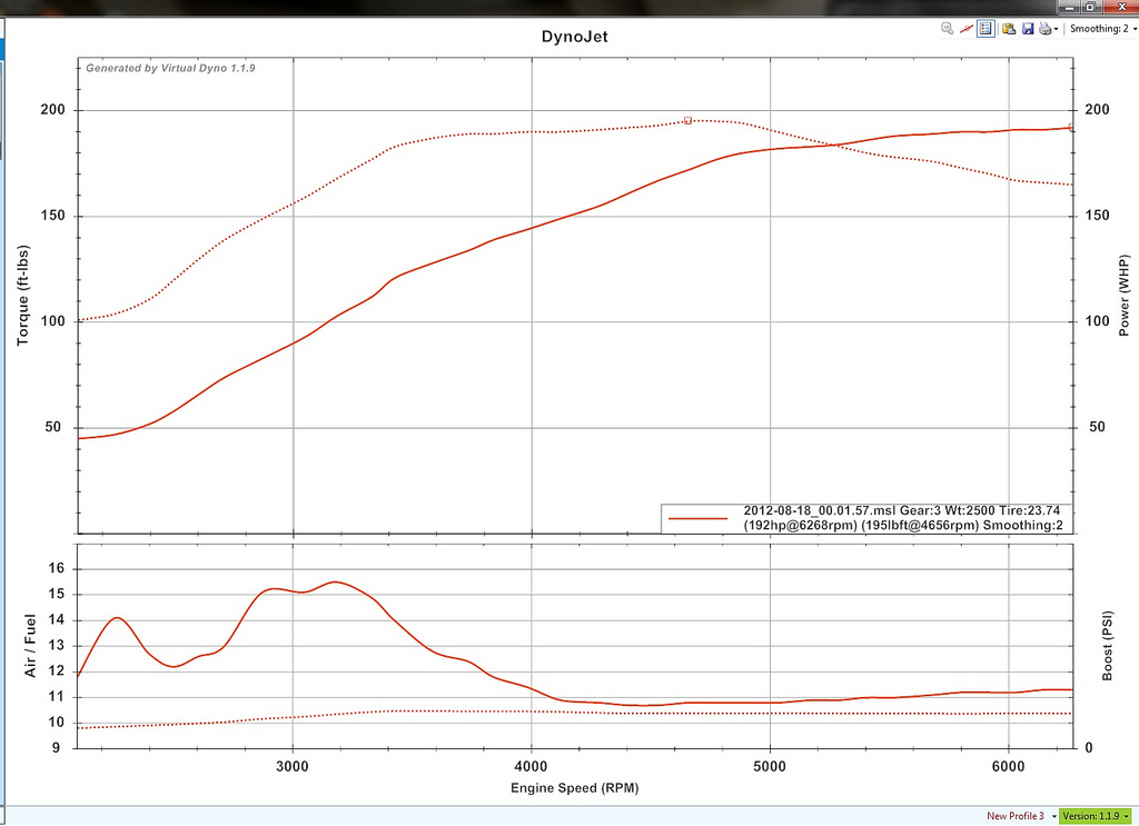 Also with virtual dyno make sure you do the pull on the flattest road possible, then cut out all extra data before you graph it. Also when graphing it make sure you have the correct final drive selected, and at least close to the correct tire height using their calculator.