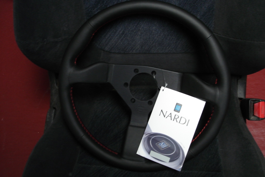 Got a Nardi wheel in the mail. also got NRG(?) hub, but it's garbage. So i need to find a hub that isn't gutter trash. Hopefully a quick release too.