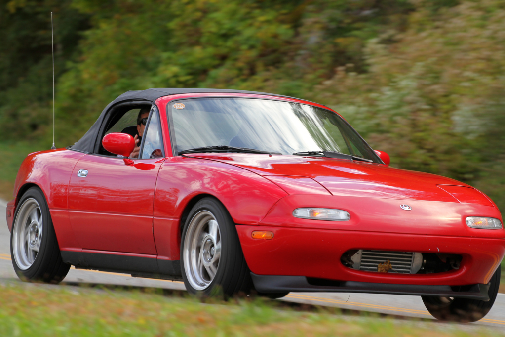 Took the car to the dragon. Car was fastest on the dragon by far, only on wastegate pressure. Typical Miata didn't have a single issue. Dunlop star spec tires rape. Aaannnnddd i capped 35mpg with 2 people and a full trunk on the highway home. Turbo + megasquirt = awesomeness!!