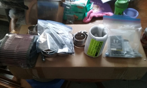 So we heard back from Mishi and after finding my reciept and sending vin and such we will be getting a replacement for only paying shipping! Also the rest has arrived for the turbo parts. The plan for tonight we will get there around 740 probably, get the transmission fully mounted, reinstall starter, mount on the motor mounts, dipstick tube, upper rad hose, and get the motor back bolted in the car. Depending on where we are on time possibly mount the manifold and reinstall the water tube as well as run tb side of piping. This weekend we have to get started on swapping a motor in his brothers dakota, hopefully a nice smooth remove- install but knowing the luck of this truck i doubt it. Anyway here are a few pics and ill be sure to update tomorrow with our progress.