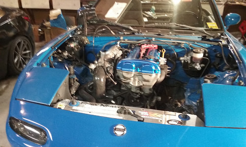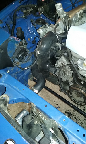 Turbo kit should be in at the end of the week so hopefully this weekend we will have the motor back in. New Gates timing belt and waterpump were done last weekend. There is a warranty claim in at Mishimoto for a new radiator, the core is leaking on this one.