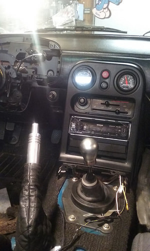 Well after a week of that dakota its all squared away. My only advice to anyone on this site, dont by one they arent special. So last night we got back over to the car, we didnt spend too much time at it. I installed the new radiator and as Justin put in the turbo we realized the lower hose for cooling has to be shortened per flyin miatas instructions. Also got the gauges mostly installed just need an adapter for the boost. Couple things we have to pick up include; bango bolts(fm probably sells them with turbo(so not included)) thread tape for iat and various others, fitting for boost gauge, still need to pick up the straight exhaust pipe. Also we put in the Canton coolant res which to my dislike is not a perfect fit but well enough for most. Here are a few pics from last night
