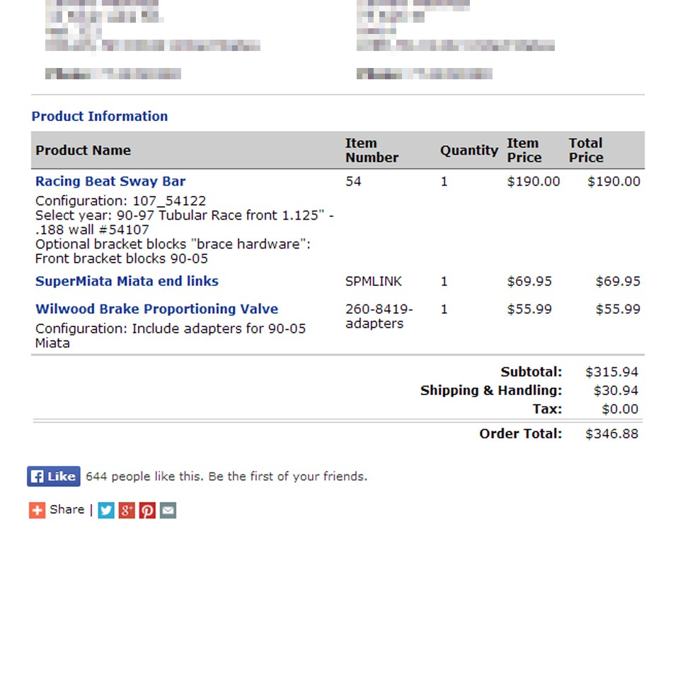 949 order (after much debate as to whether I should get poly bushings ... those will wait as my stockers look okay and I'm trying to stop the financial hemorrhaging).