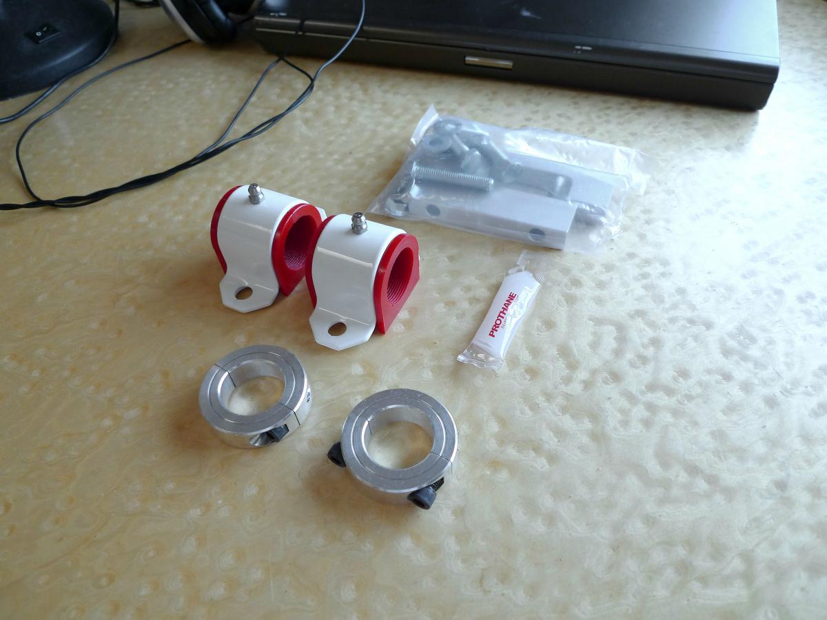 If you look at the picture of his bushings you'll see that the white metal brackets arent touching the table. If you bolted them to the car like this, they would squeeze the swaybar and cause it to bind when you tightened the bolts. So you can either run a washer ground into the shape of a D on each bolt to space the brackets away from the chassis or you can sand the bushing down to be the correct height. With the thousands of these bars that RB has sold like this you'd think they've have figured out the correct bushing.
