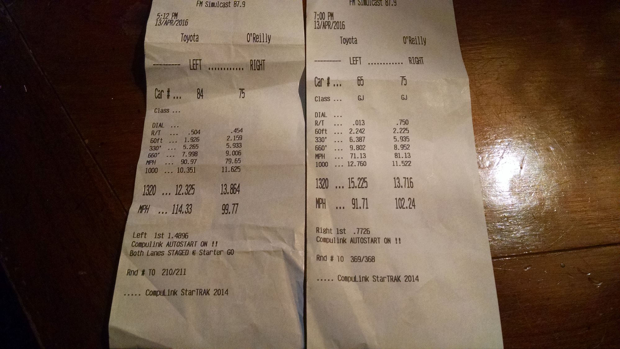 I am car 75, the slip on the left is against an old school Camaro, the slip on the right an older WRX.