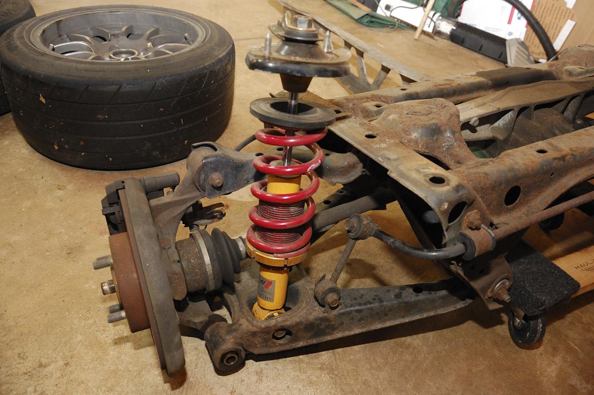Then I jacked the ugly car and started removing the rear subframe.