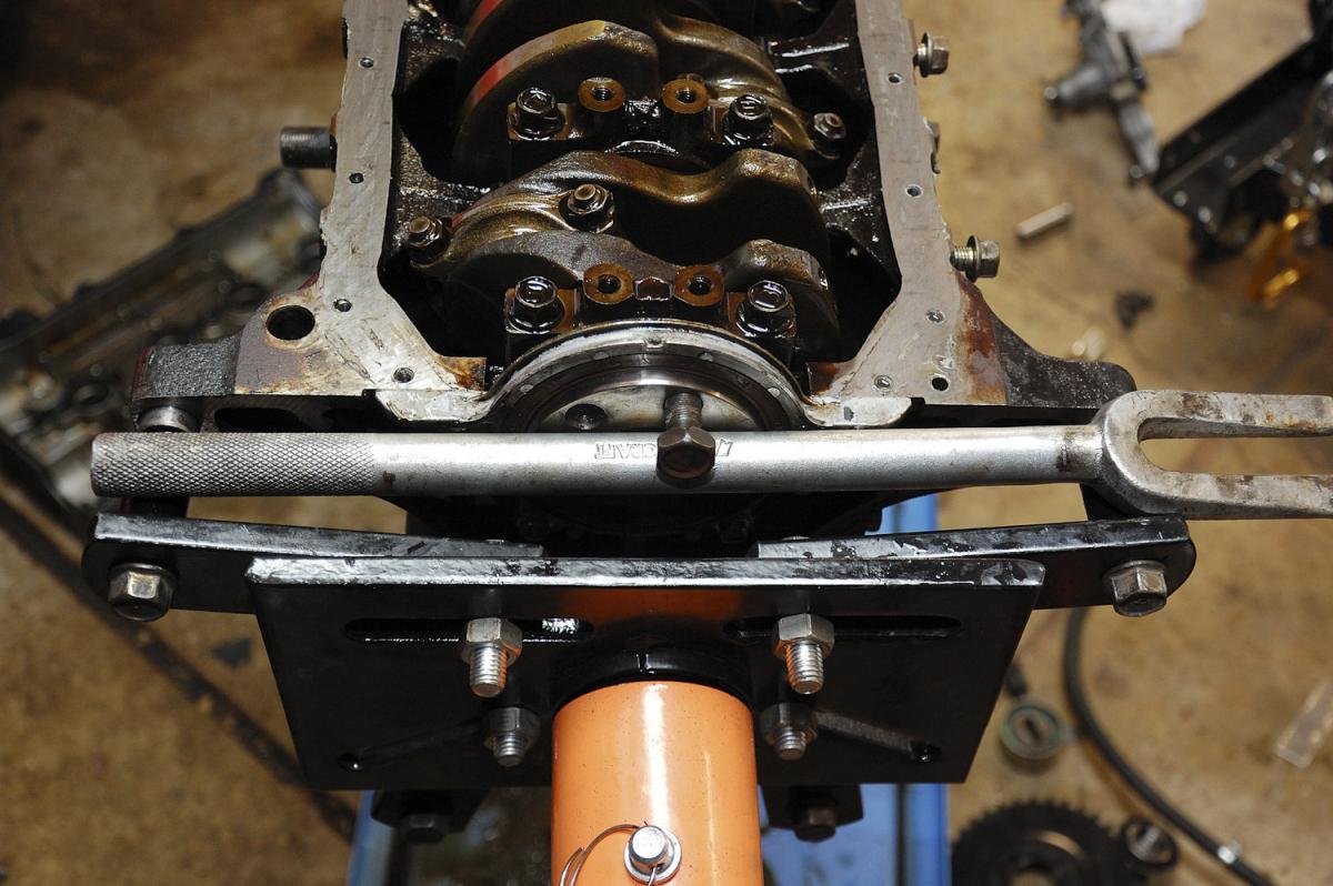 Forgot to remove crank bolt so I held the crank like this. Not reusing this flywheel bolt, obviously.