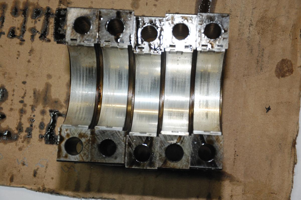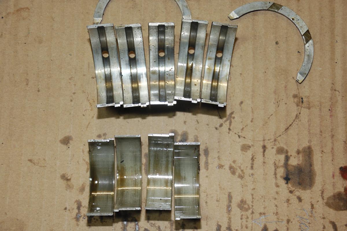 Bearings look good to me. There was a bit of forward play on the crankshaft. idk. hopefully I won't need oversized thrust bearings or anything like that.