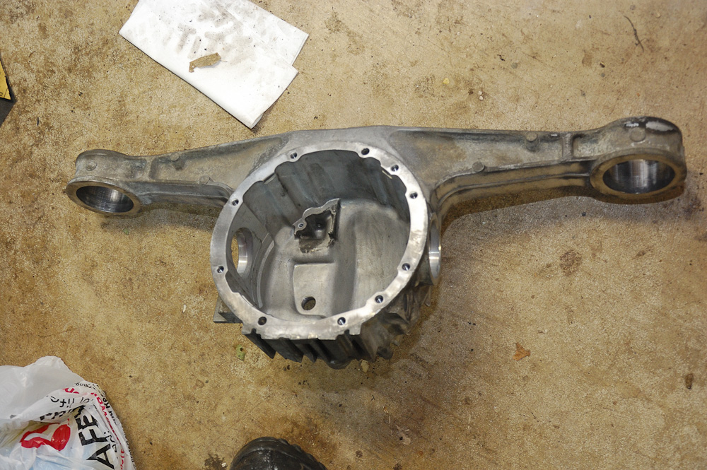 Now the diff. First, taking it apart, I stripped the longest bolt that holds the housing to the actual diff. No worries, out came my prying fork and an angle grinder.