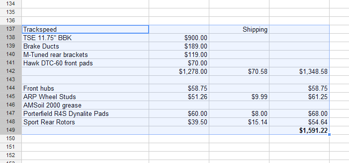 Always leave a column to subtract any part out money I make from selling existing parts. Makes me feel better.