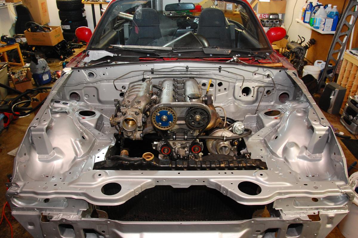 I like what you did with the coolant line, just tapped it into the speed sensor hole!! Man that stuff looks sexy in your super clean engine bay. I'm glad it will be put to use on a built motor track beast!