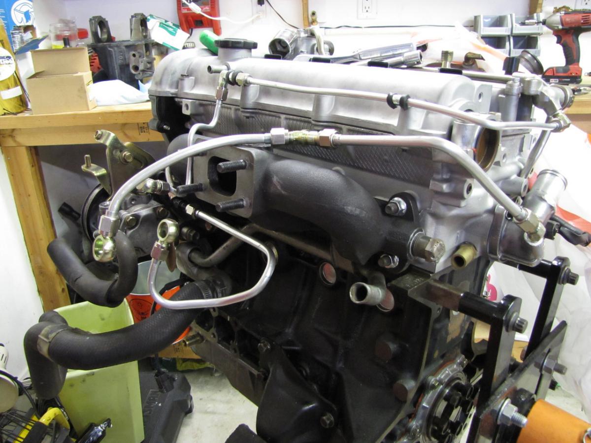 I had to do some VVT oil feed rerouting (i.e. bending OEM hardline), I forget why - I think it's from my 'turned a 1.6l water neck on the lathe because I didn't know about the kia part' coolant reroute.