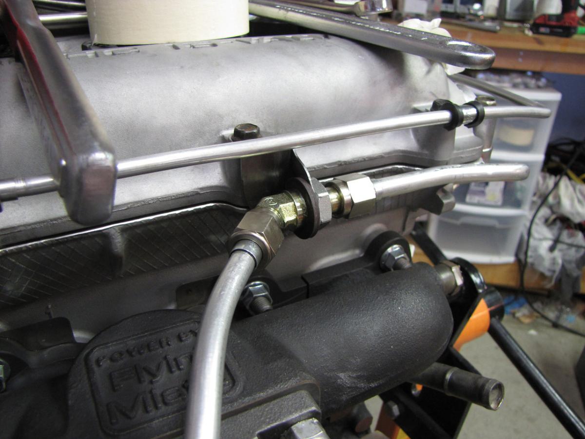 The new routing is much shorted and goes nearly immediately to the support brace I put in. I'm debating making the brace a 3D structure as was the water return support. That thing isn't going anywhere, whereas I'm a little worried about the water feed leaking. The oil feed supports were just some sub $1 supports I got at home depot or something. The oil return is how a hard line too (another never ending source of trouble for me), much lighter weight and whatnot. It was getting just a big hard to bend even in alum.
